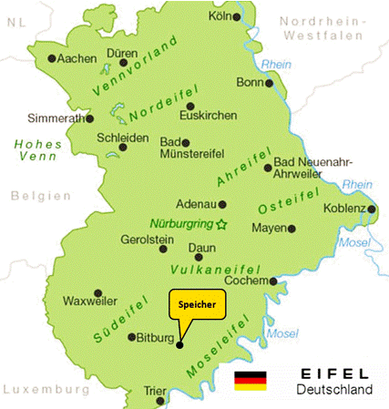 Deine Basis-Unterkunft in Speicher befindet sich zentral gelegen, und nur 20-45 Autominuten entfernt zwischen den prämierten Wandergebieten: Felsenland Südeifel/Luxemburg, Vulkaneifel, Mosel und Moseleifel.